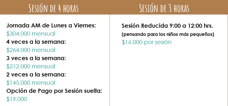 La jornada considera: Momento de Acogida y Habilidades Adquiridas / Saludo / Juego de Rincones / Colación / Recreo / Experiencia de Aprendizaje Planificada / Cuento / Atelier (sobre los 28 meses)